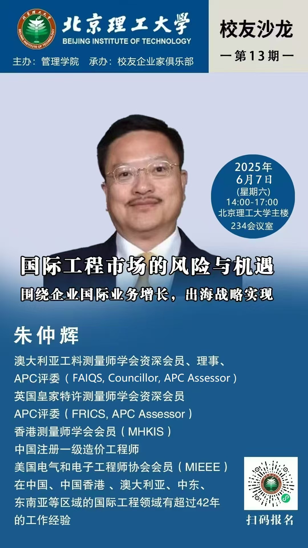【活动报名】校友沙龙第13期 | 朱仲辉:国际工程市场的风险与机遇