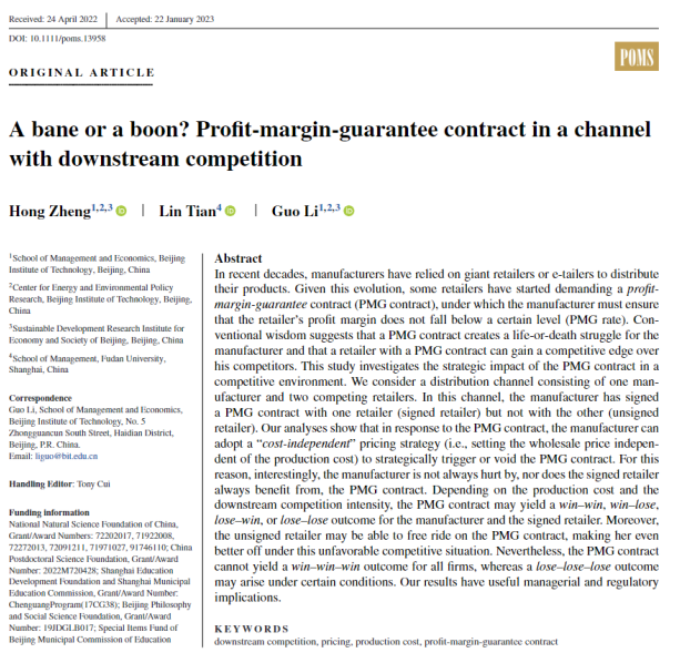 发表刊物:Production and Operations Management