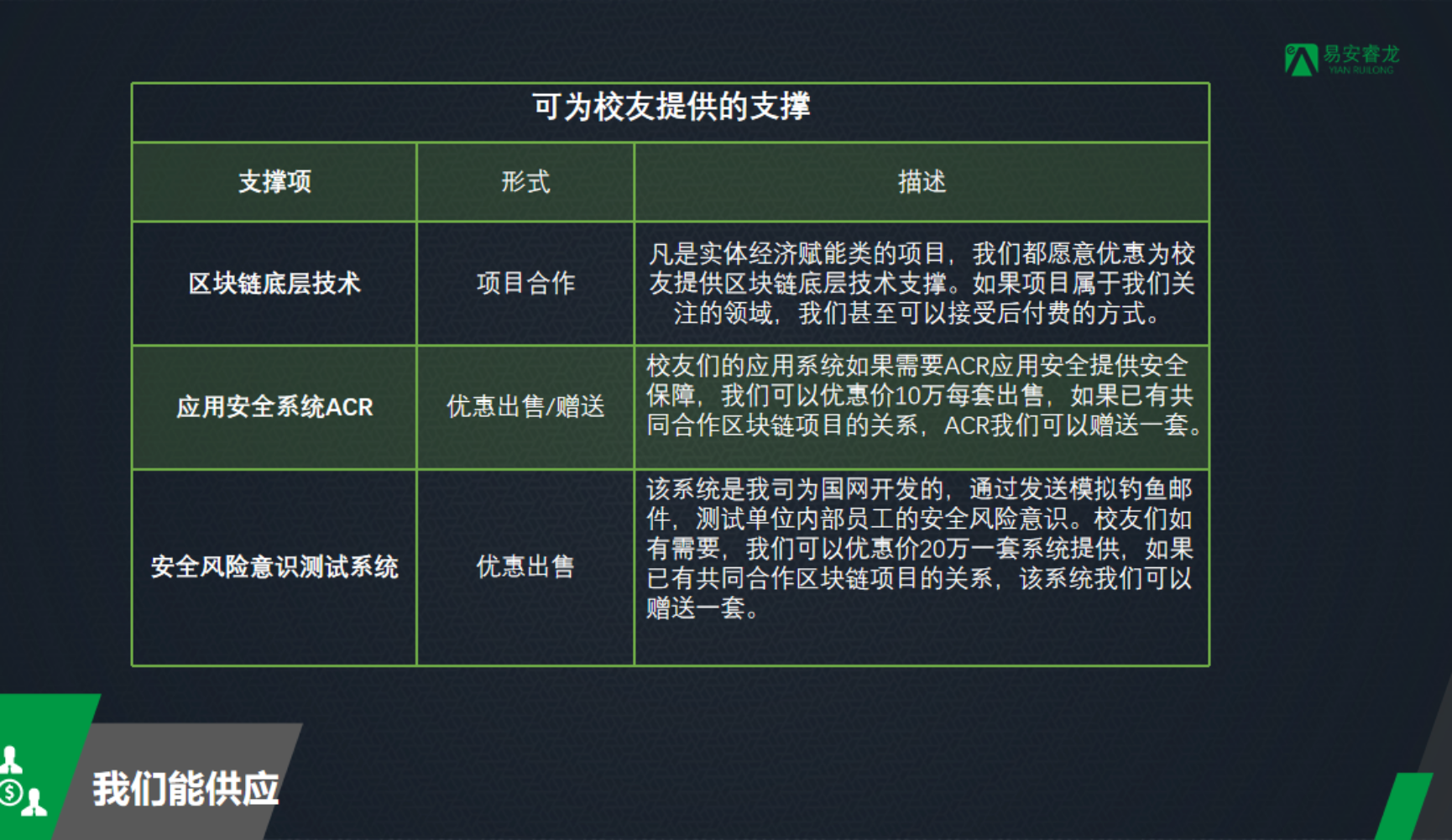 王睿首先感谢学院“助燃计划”对校友企业的支持和帮助,随后他从发展历程、主营业务、技术研发以及可和学校、校友企业对接资源等方面介绍了易安睿龙情况,并在区块链技术如何赋能科研管理、如何为剧本杀融合等方面与校友们做了深入探讨与交流,活动热度达到最高峰。