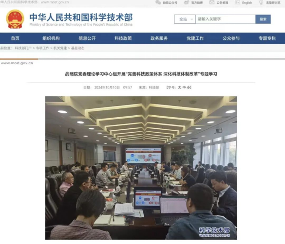为全面贯彻落实党的二十届三中全会精神,9月23日上午,科技部战略院(中国科学技术发展战略研究院)党委理论学习中心组以“完善科技政策体系...